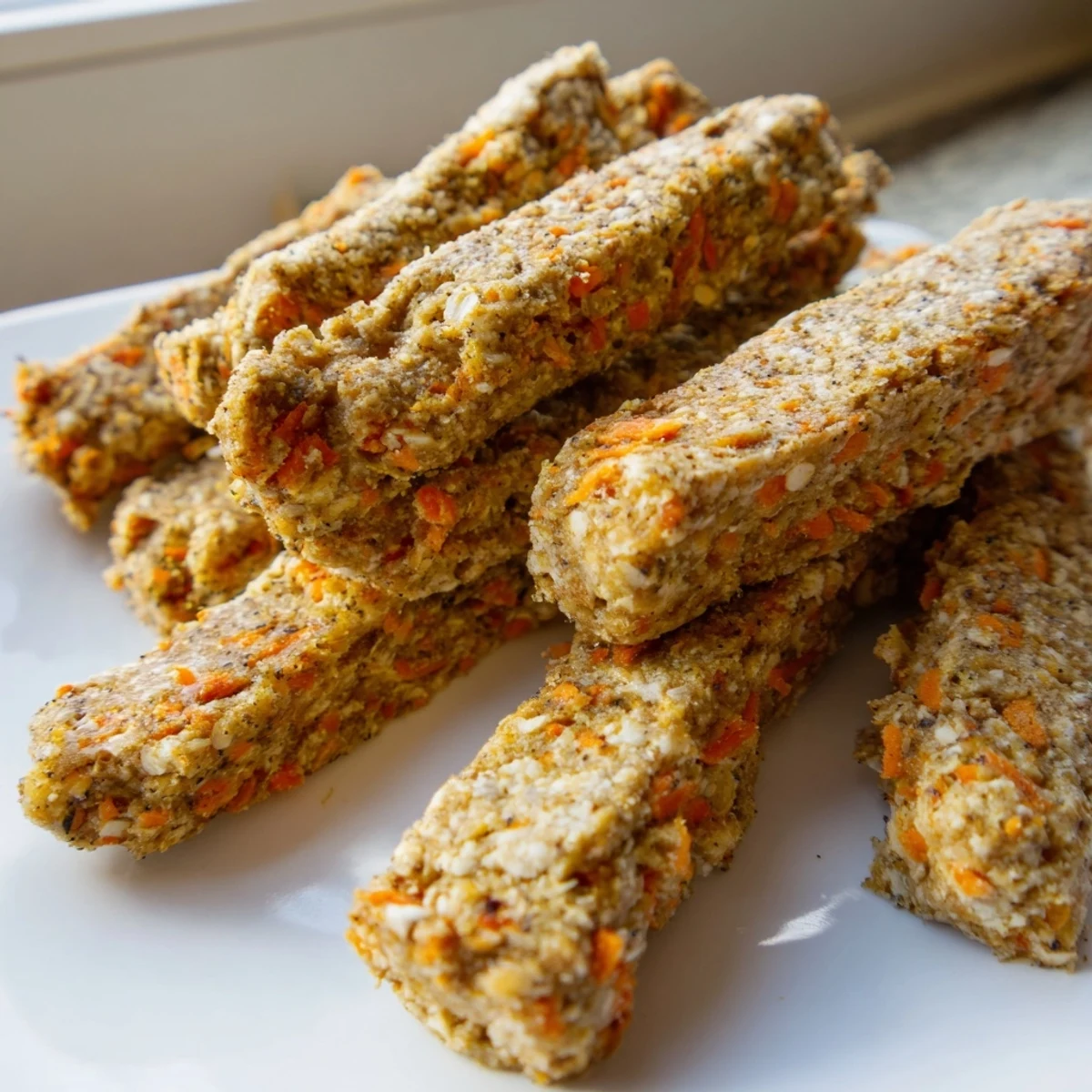 These wholesome apple and carrot chew sticks combine fresh grated produce with whole wheat flour and oats for a nutritious homemade treat your dog will love. The natural sweetness from apples and carrots creates an irresistible flavor while the baking process achieves that perfect chewy texture dogs crave.