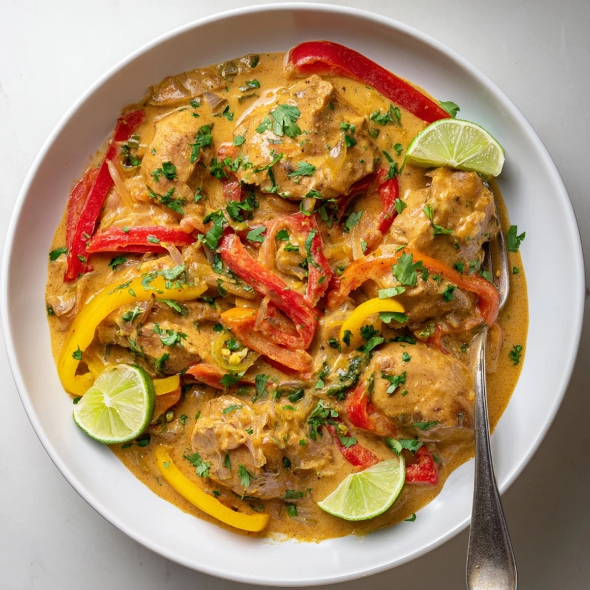 This vibrant dish features tender chicken thighs marinated in lime, garlic, smoked paprika, and cumin, then simmered in a rich coconut milk sauce with bell peppers, tomatoes, and jalapeño. The creamy, spicy sauce balances heat with tropical sweetness, creating an unforgettable Brazilian-inspired meal perfect over white rice or with crusty bread.